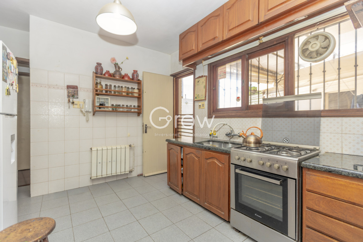 Parrillero cerrado integrado a la cocina junto a una cómoda sala de estar, patio con piscina y parrillero descubierto. Cocheras para 4 vehículos.